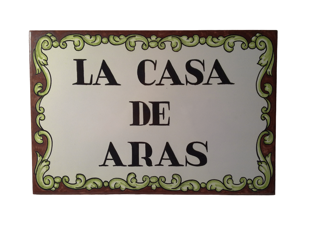 Azulejo personalizado en cerámica de Talavera pintado a mano con el nombre de la casa de 20x30cm, se lo hacemos con las medidas, inscripción y decoración que desee.