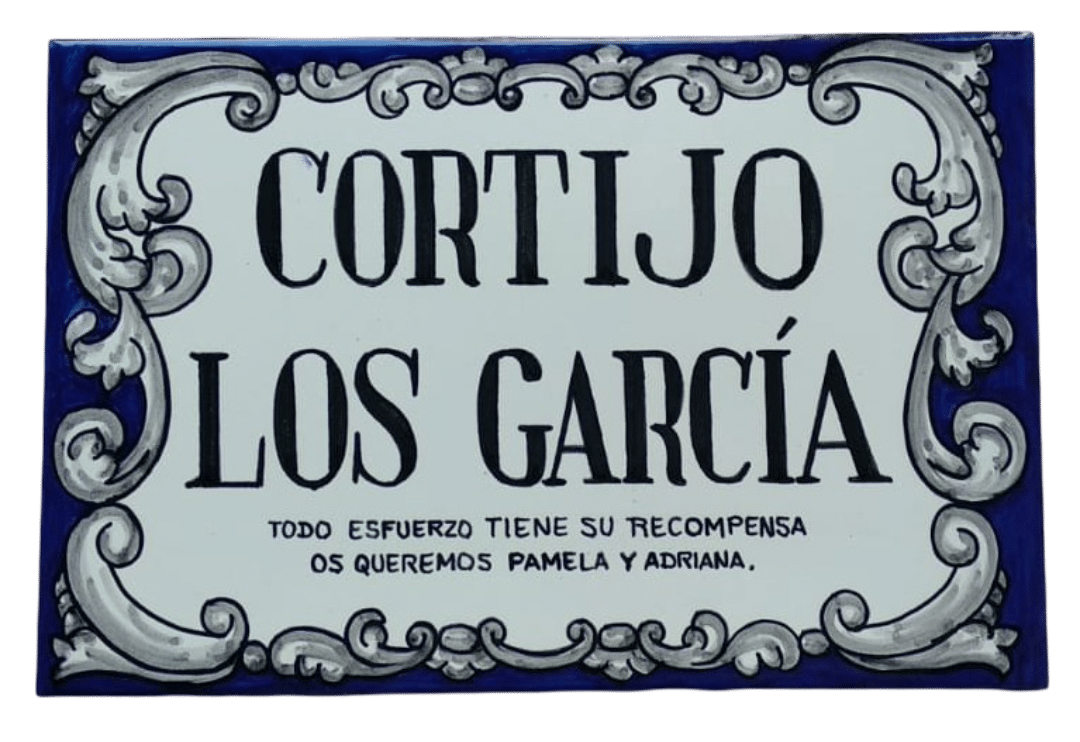 Azulejo personalizado en cerámica de Talavera pintado a mano con el nombre de la casa, finca o Villa de 20x30cm, se lo hacemos con las medidas, inscripción y decoración que desee.