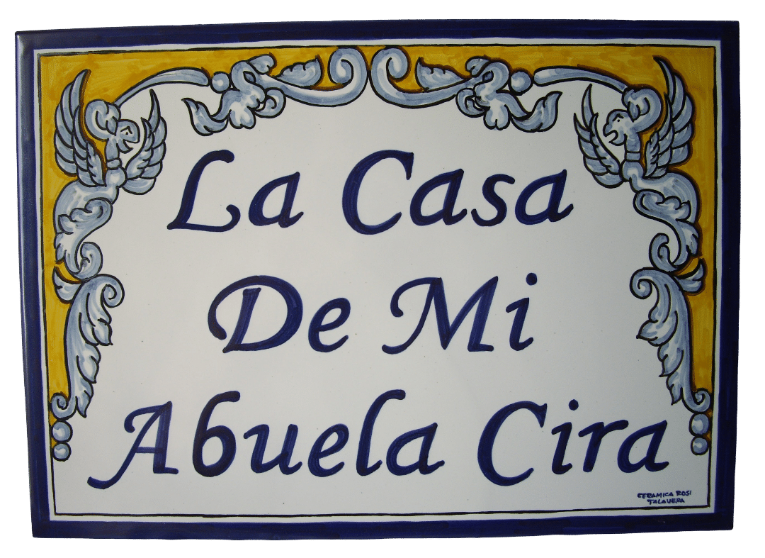 Azulejo personalizado en cerámica de Talavera pintado a mano con el nombre de la casa de 40x30cm, se lo hacemos con las medidas, inscripción y decoración que desee.
