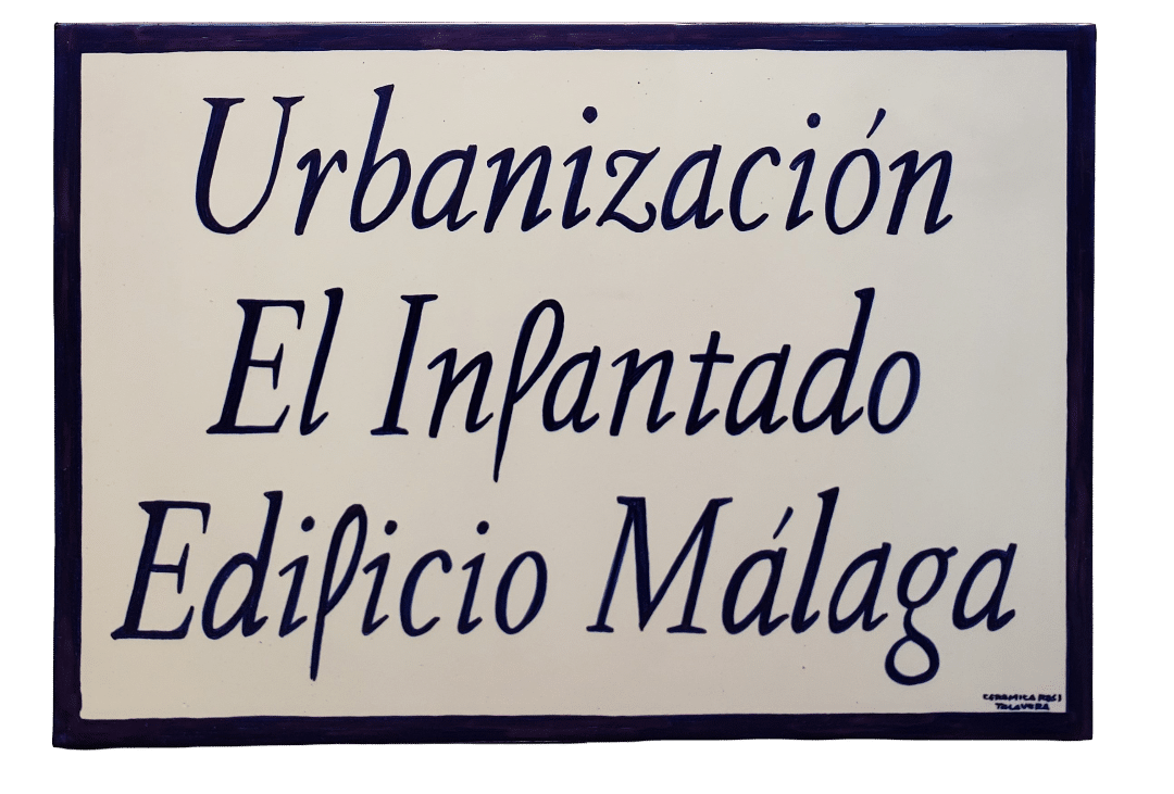 Azulejo personalizado en cerámica de Talavera pintado a mano de 40x30cm para entrada de Urbanización, fincas, casas etc.., Se hace con las medidas, inscripción y decoración que desee. (Consultar precio según decoración y otras medidas).