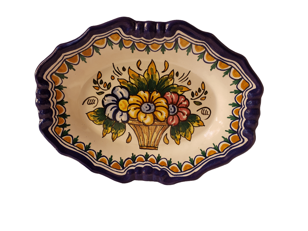 Bandeja artesanal de cerámica de Talavera de 25x18cm con decoración floral pintada a mano se lo hacemos con las medidas y decoración que desee.