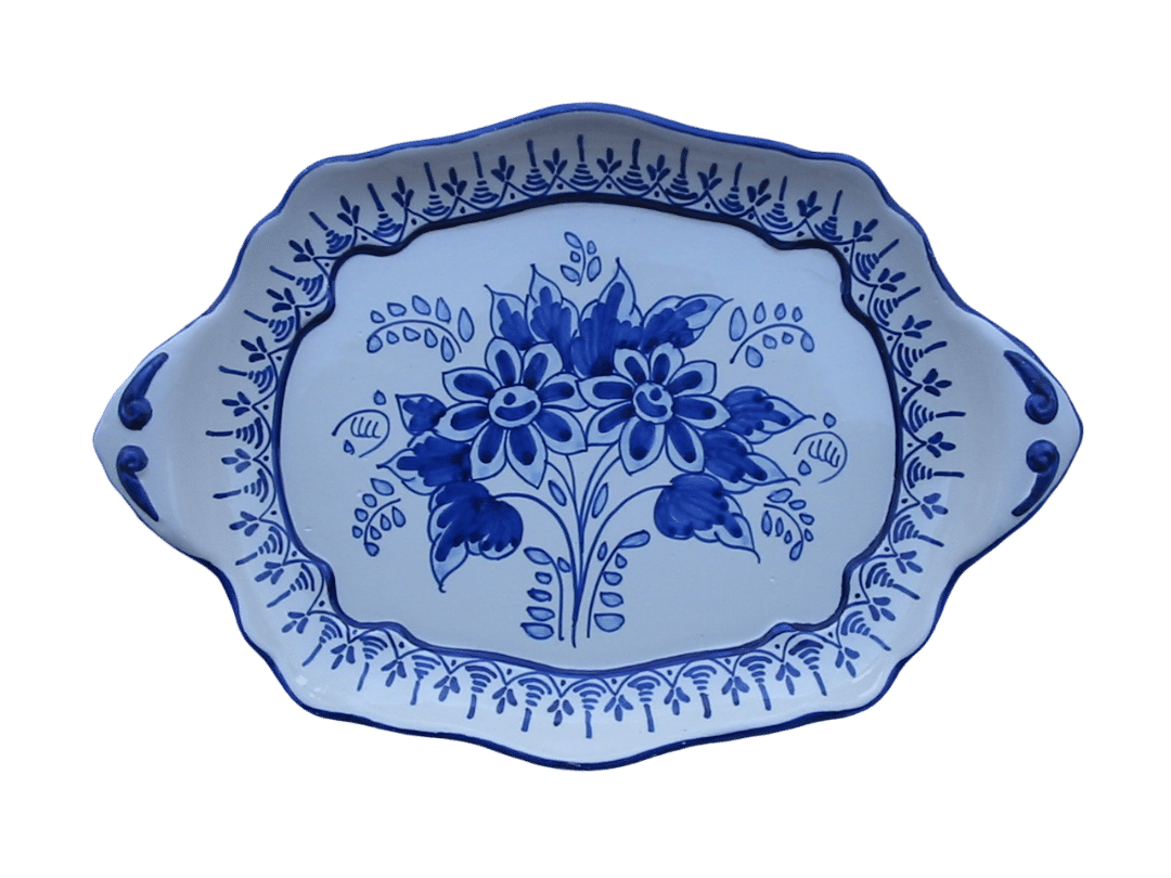 Bandeja artesanal de cerámica de Talavera de 26x19cm decorada a mano en color azul, se lo hacemos con las medidas y decoración que desee.