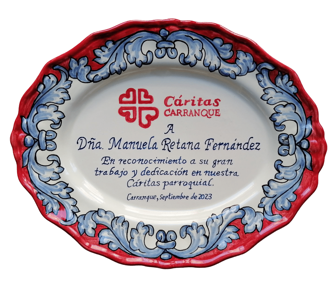 Bandeja personalizada de cerámica de Talavera con logo de 34x27cm decorada a mano se lo hacemos con el logo, inscripción, medidas y decoración que desee. (Los precios pueden variar según la decoración)