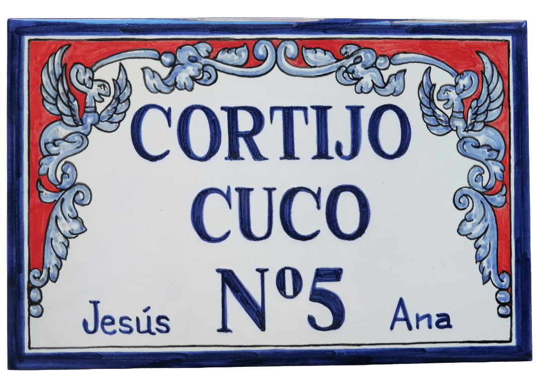 Cartel de cerámica de Talavera personalizado en 20x30cm, se lo hacemos con las medidas, inscripción y decoración que desee.