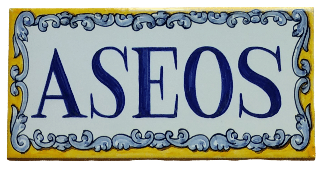 Letrero de cerámica de Talavera pintado a mano para puerta o fachada. Se lo hacemos con la medida, inscripción y decoración que desee. (Consultar precio según decoración y medidas)
