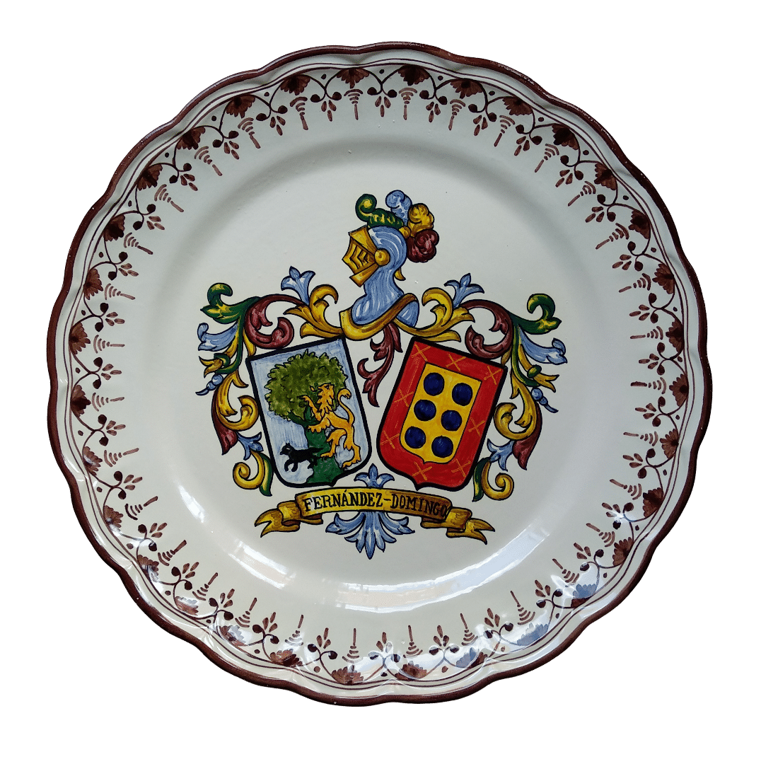 Plato heráldico de cerámica con los escudos de los apellidos de 38cm, se lo hacemos con los apellidos, decoración y medida que desee.