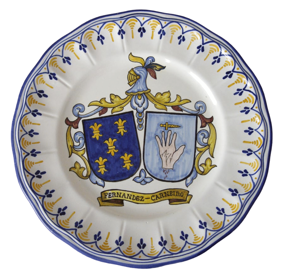 Plato heráldico de cerámica de Talavera con los escudos de los apellidos de 26cm, se lo hacemos con los apellidos, decoración y medida que desee.