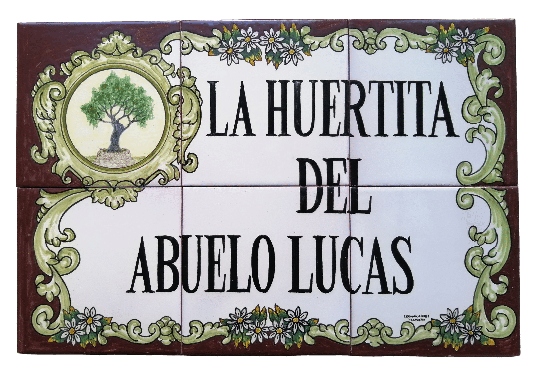 Rotulo personalizado en cerámica de Talavera pintado a mano de 30x45cm realizado en 6 azulejos de 15x15cm, se lo hacemos con las medidas, inscripción y decoración que desee.