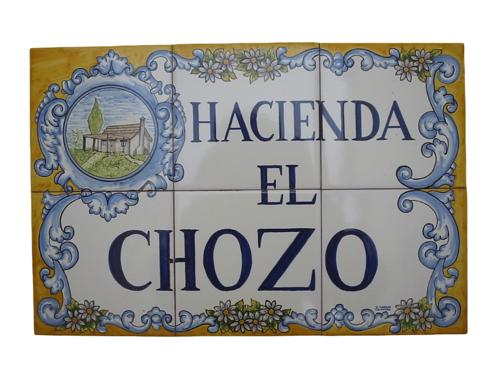 Rótulo personalizado en cerámica de Talavera pintado a mano de 30x45cm realizado en 6 azulejos de 15x15cm, Se hace con las medidas, inscripción y decoración que desee. (Consultar precio según decoración y otras medidas).